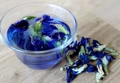 Синий экзотический тайский чай обладает сильнейшим стимулирующим воздействием и служит отличным анти депрессантом. Вытяжки из растения прекрасно укрепляют волосы.