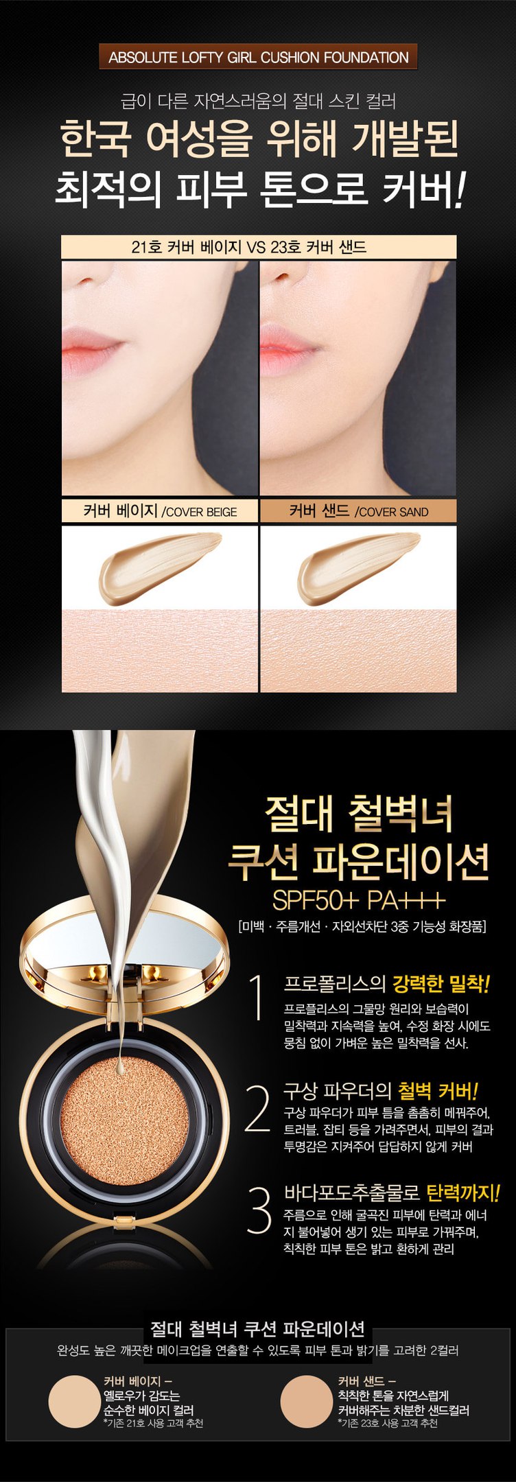 Кушон, делает кожу гладкой, матовой, скрывает все недостатки кожи, маскирует тёмные круги под глазами, гиперпигментацию кожи.