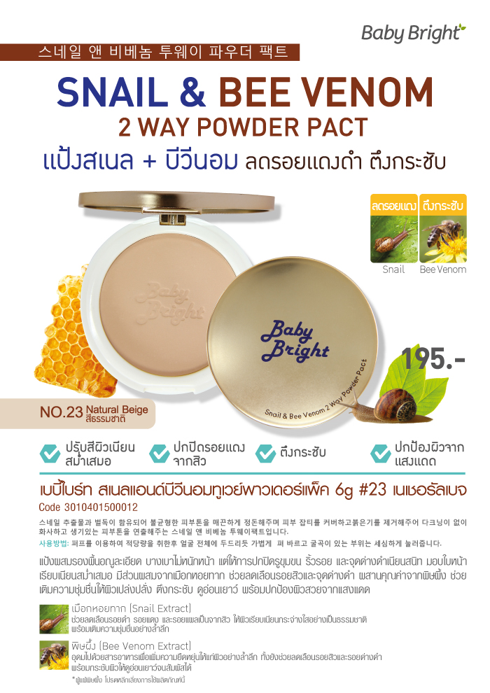 Snail & Bee Venom 2 Way Powder Pact Baby Bright 6 gr. Thailand