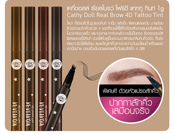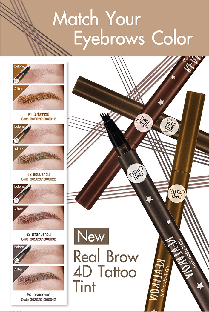 Cathy Doll Real Brow 4D Tattoo Tint #02 Ash Brown. Thailand