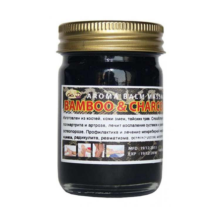 Тайский черный ароматический змеиный бальзам для массажа из костей и кожи змеи с тайскими травами 50 гр.