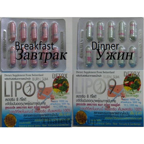 Тайский комплекс для похудения Липо 9 капсулы для снижения веса (курс на 1 месяц 60 таблеток) 3 зеленых и 3 розовых Lipo 9
