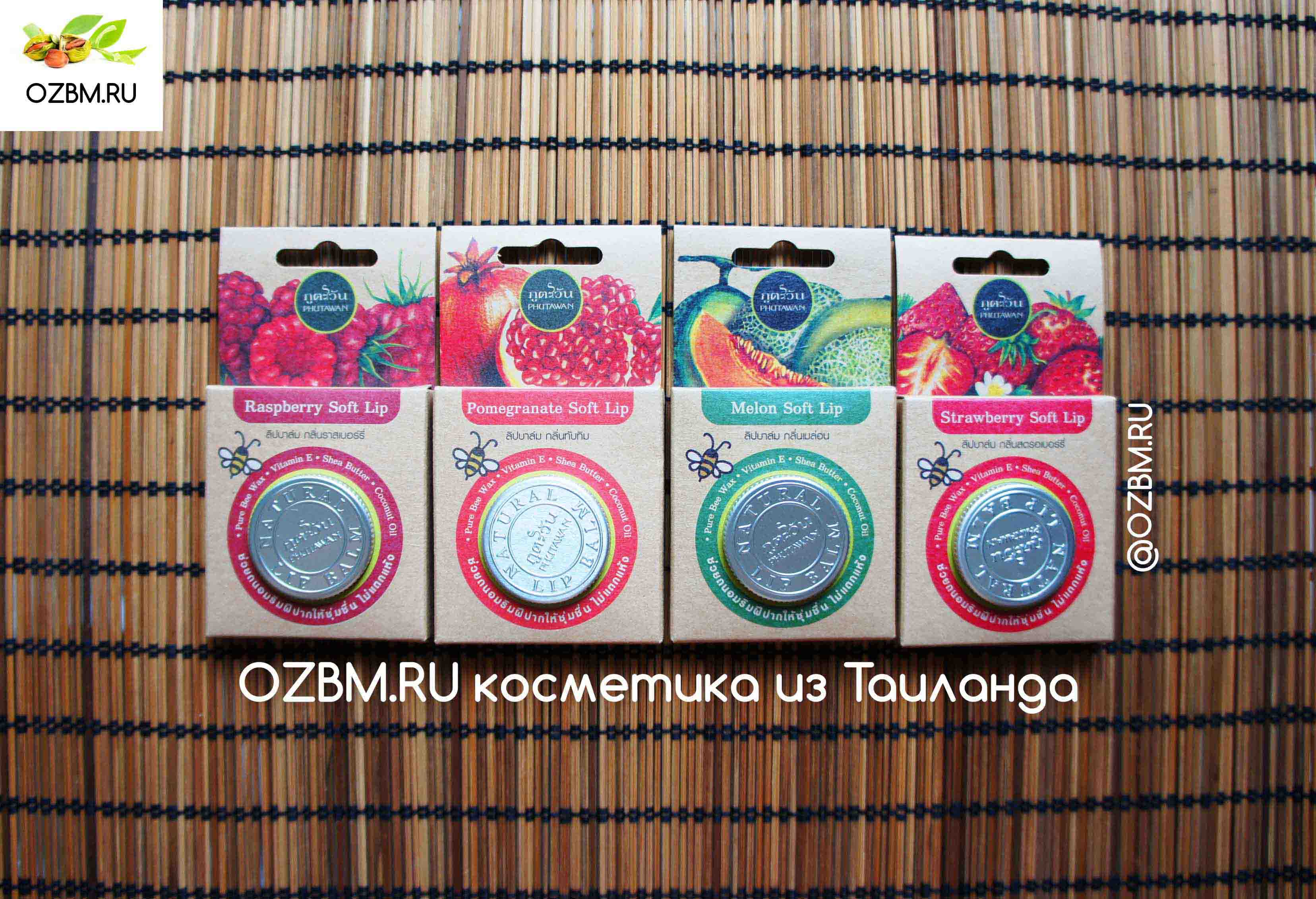 Тайский бальзам для губ с натуральными маслами и ароматом дыни Phutawan купить в Москве и Московской области.